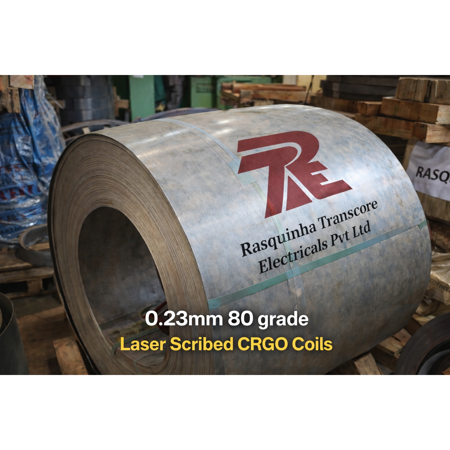 Buy 0.23mm 80 Grade Laser Scribed CRGO Coils from Rasquinha Transcore Electricals Pvt Ltd, Navi Mumbai. Prime electrical steel for power & distribution transformers. Low core loss, high permeability. Ready stock available