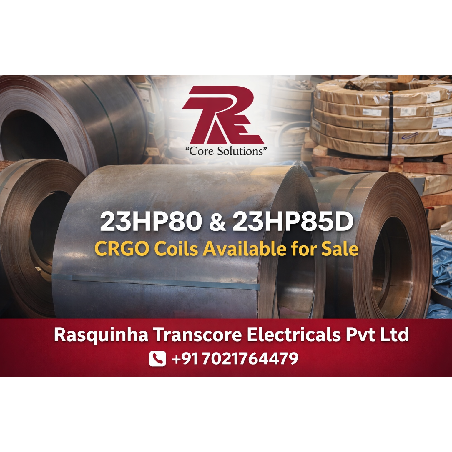 Rasquinha Transcore Electricals Pvt Ltd offers 23HP80 and 23HP85D CRGO coils for transformer core manufacturing. Our CRGO electrical steel coils ensure low core loss, high permeability, and consistent magnetic performance, ideal for power and distribution transformers.