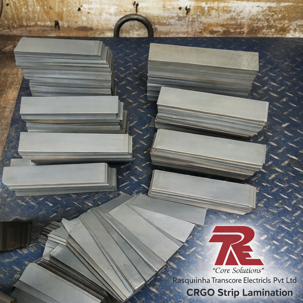 Rasquinha Transcore Electricals Pvt Ltd is a trusted manufacturer and supplier of CRGO strip laminations used in power transformers, distribution transformers, and high-efficiency electrical equipment. Our Cold Rolled Grain Oriented (CRGO) steel strip laminations are precision-cut to deliver low core losses, high permeability, and superior magnetic performance.
