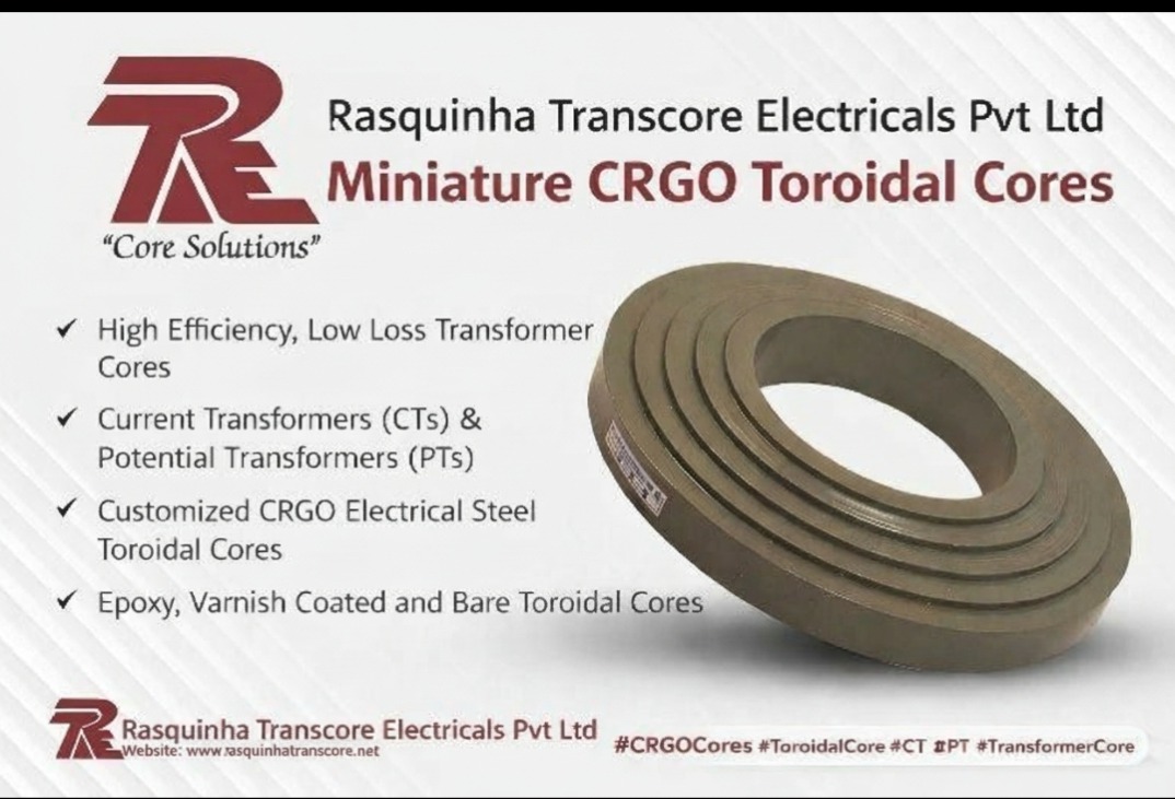 Miniature toroidal core manufacturer India, CRGO toroidal core supplier India, low loss transformer core, CRGO magnetic cores India, CT PT toroidal cores, customized toroidal cores, high efficiency transformer core, electrical steel toroidal core, Rasquinha Transcore Electricals Pvt Ltd