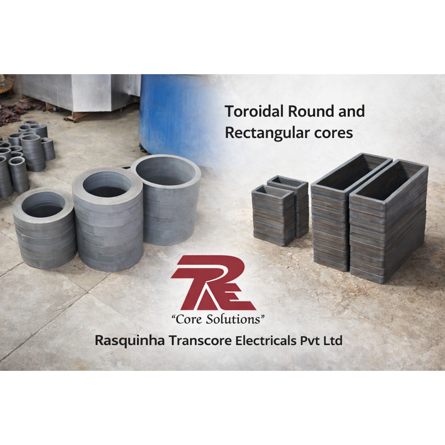High-quality toroidal round and rectangular transformer cores manufactured by Rasquinha Transcore Electricals Pvt Ltd. Precision-engineered CRGO cores for power, distribution, and industrial transformers. Reliable, efficient, and customized solutions